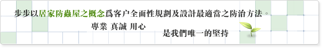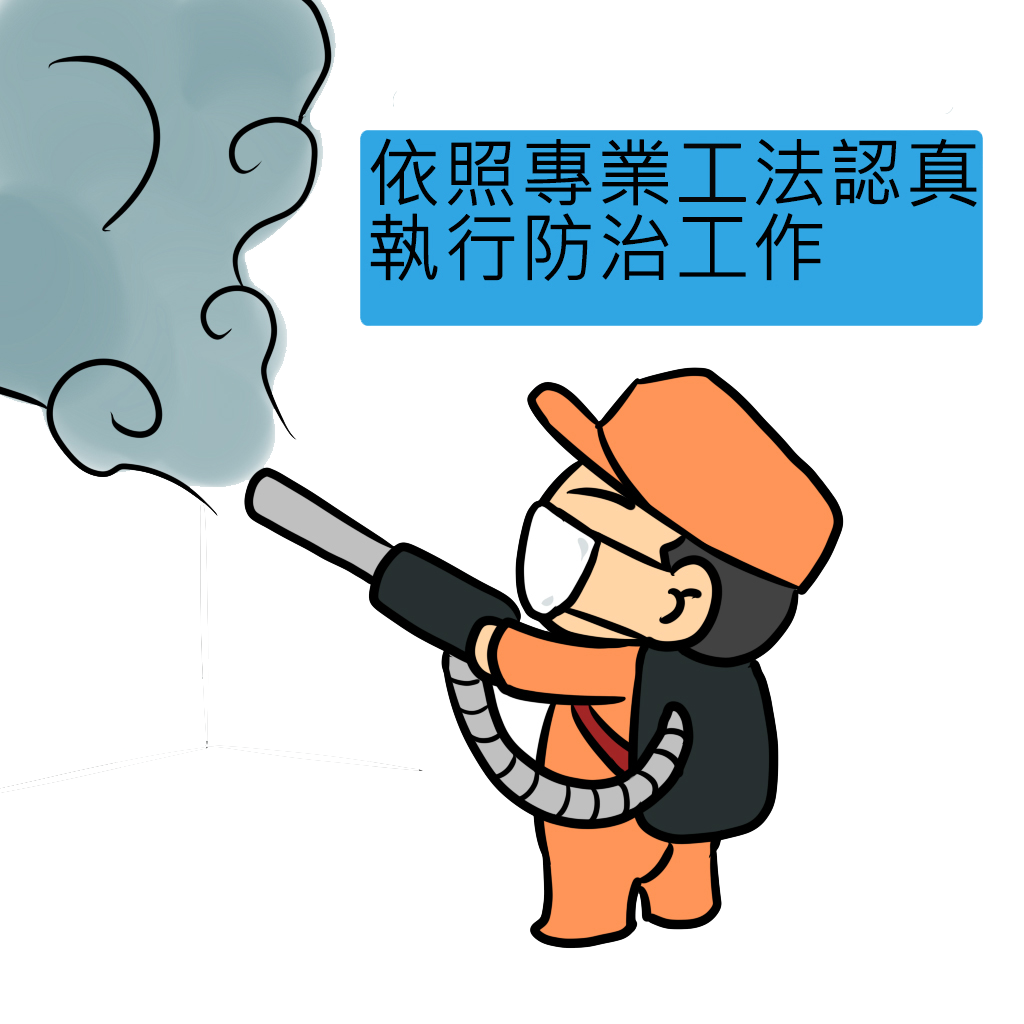步步對待客戶完全以服務與責任為出發點,客服人員會在施工完畢後定期與您連絡,並將客戶意見記錄下來,共同檢討防治效果;以顧客滿意度為最終目的。