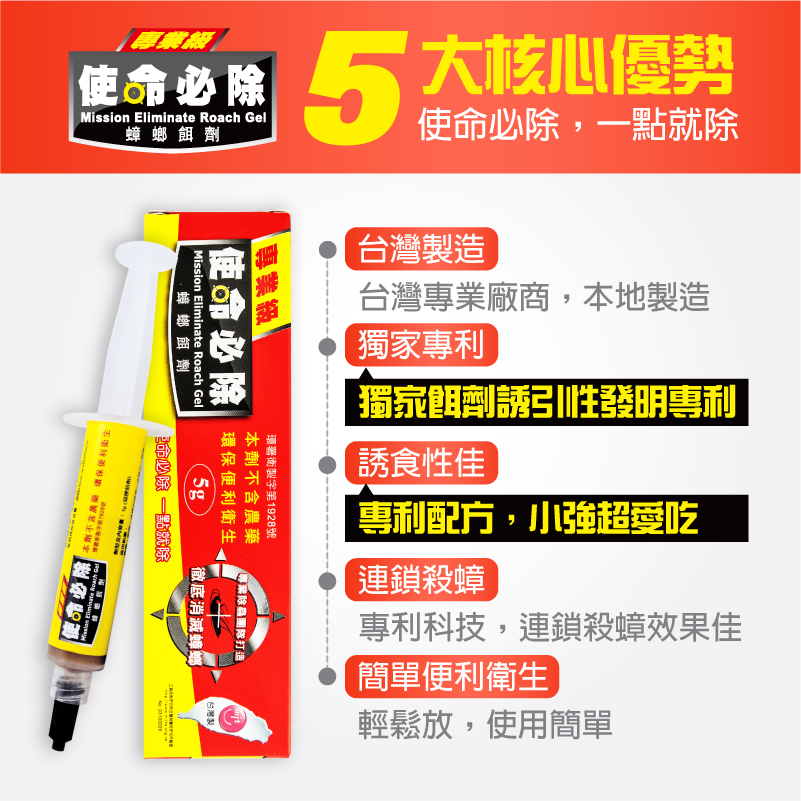 【使命必除】專利科技,連鎖除蟑!蟑螂餌劑「台灣製造、不含農藥」