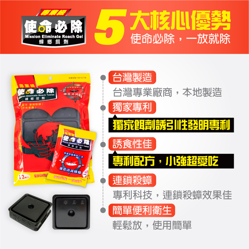 【使命必除】專利科技,連鎖除蟑!蟑螂餌錠「台灣製造、不含農藥」